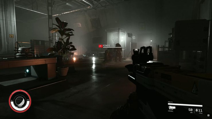 One thing that stood out in the combat system is the use of a jetpack to traverse the terrain and close the distance between you and enemy combatants. As the player is dispatching some pirates on the roof of the facility, an enemy pirate ship comes into view and lands close by, disembarking several more pirates to engage the player. Through use of the jetpack, the player is able to go straight from the roof of the research lab over to the enemy ship and engage the pirates in close quarters combat. Overall, the combat looks decent enough to account for the loss of VATS from Fallout, but I hope that with VATS’ omission they focus on making the gunplay as smooth as possible before launch.